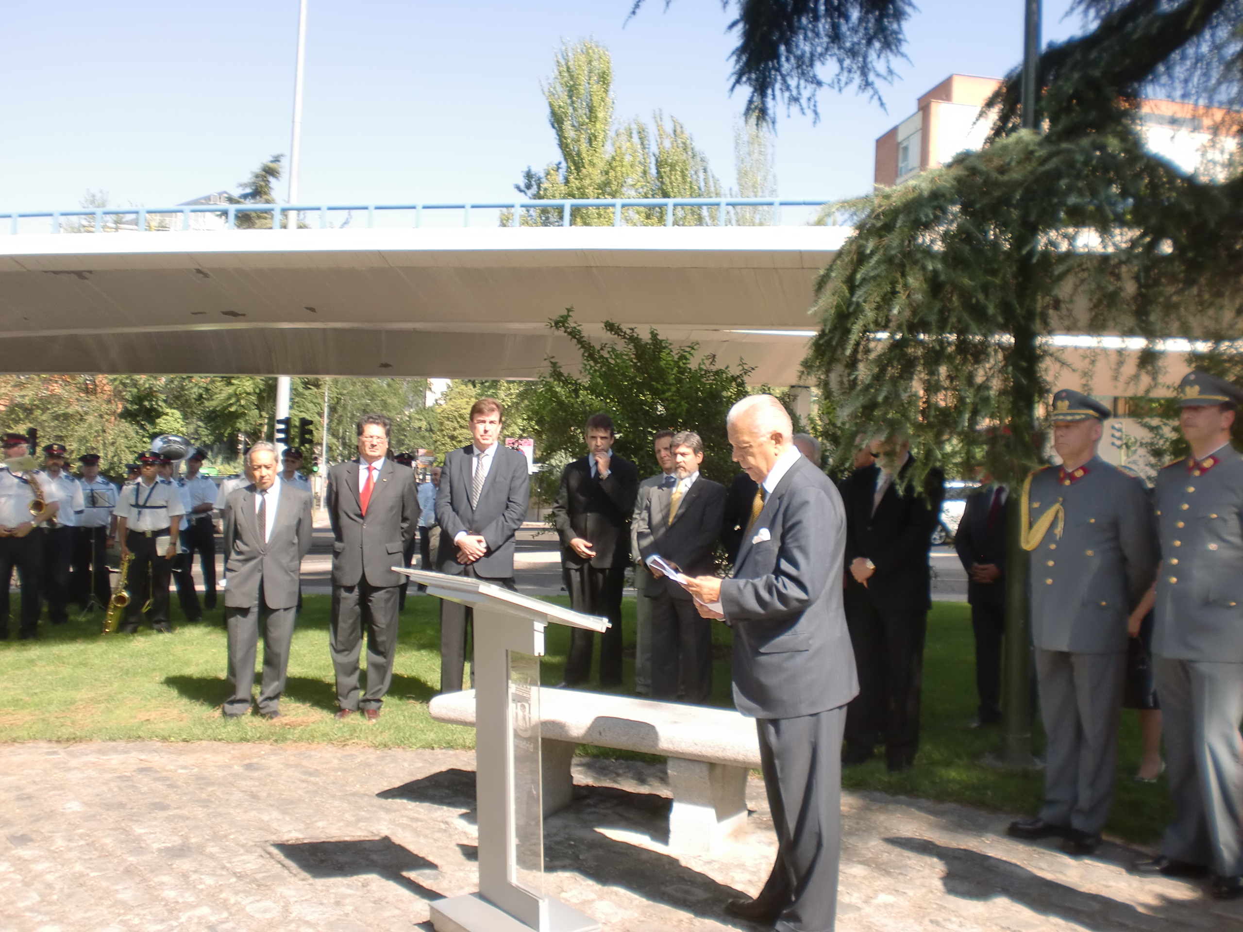 La ceremonia incluyó al colocación de ofrendas florales ante el monumento ecuestre del padre de la Patria, instalado en el parque Oeste de Madrid.