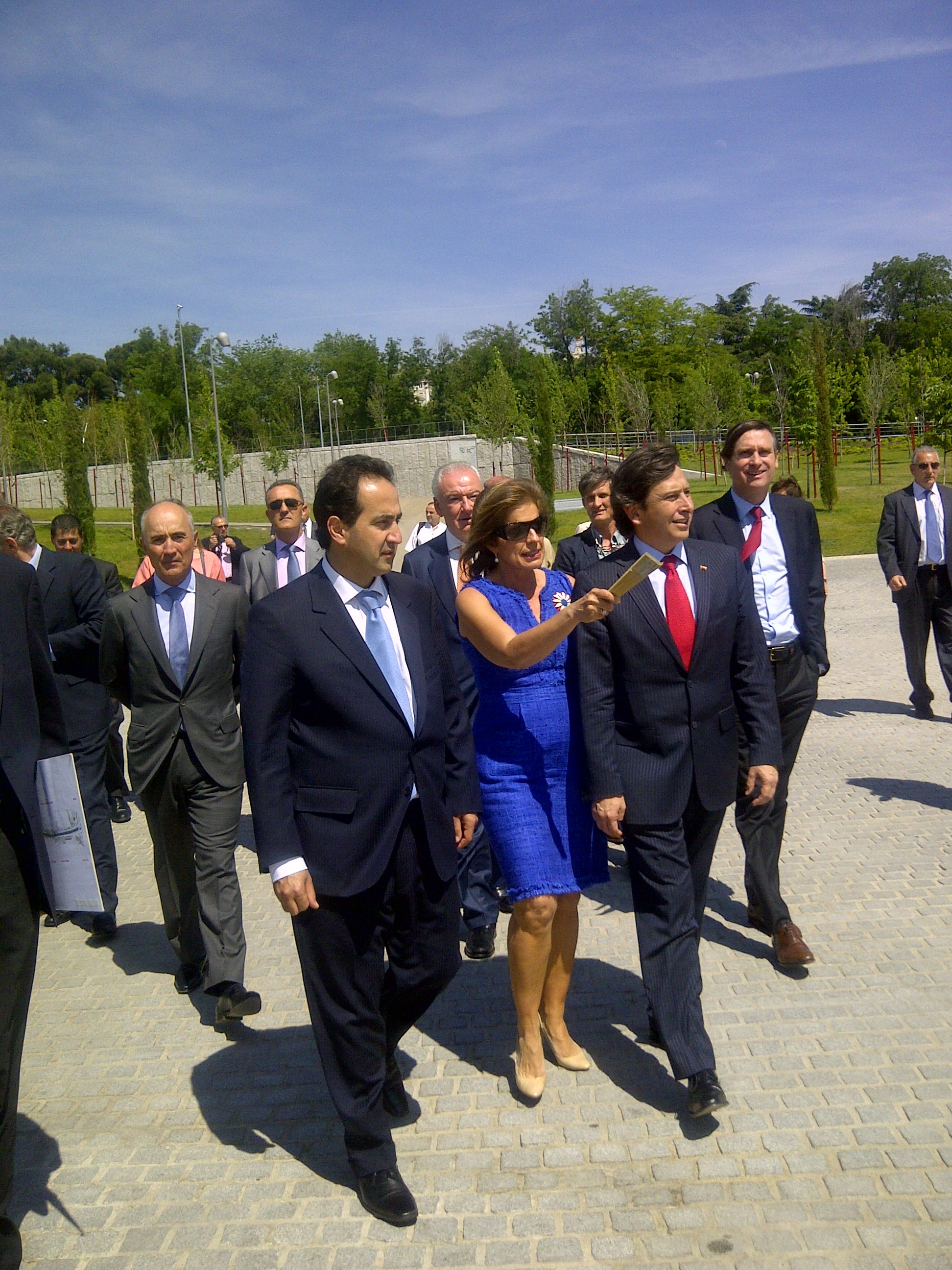 Además de su participación en la cumbre de ministros de Obras Públicas, el ministro Golborne concurrió ayer hasta el parque Madrid Río, en donde se reunió con la alcaldesa de Madrid, Ana Botella, y con el alcalde de Santiago, Pablo Zalaquett, para conocer en terreno una solución que armoniza autopistas subterráneas con un gran parque en superficie, lo que permite combinar una obra vial con un espacio de gran aporte ecológico para la ciudad y de esparcimiento para la comunidad. En la visita recorrieron la zona en que se soterró la vía M30 en la zona del río, lo que ha permitido generar un corredor verde, que une bosques, jardines y parques que estaban dispersos.