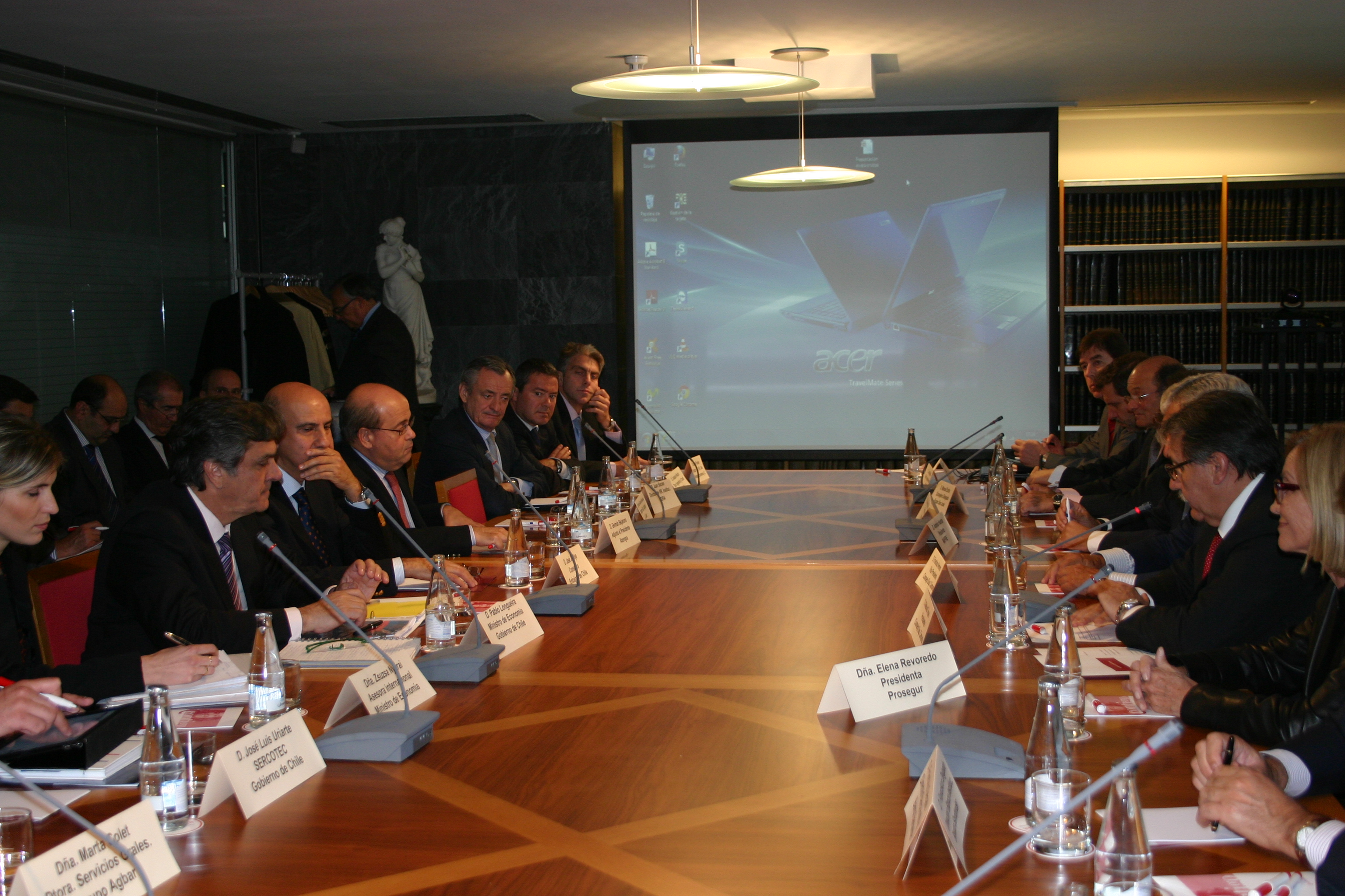 Manuel Teruel, Presidente del Consejo de Cámaras, fue el encargado de dar la bienvenida a la delegación chilena, que además del Ministro estaba compuesta por José Luis Uriarte, Director Nacional de Sercotec, Zsuzsa Nyitrai, Asesora Internacional de Ministerio de Economía; José Jaliliye, Consejero de Embajada de Chile en Madrid, Lorena Sepúlveda, Agregada Comercial de ProChile en España y Tomás Pablo, Delegado del Comité de Inversiones Extranjeras para España y Portugal.