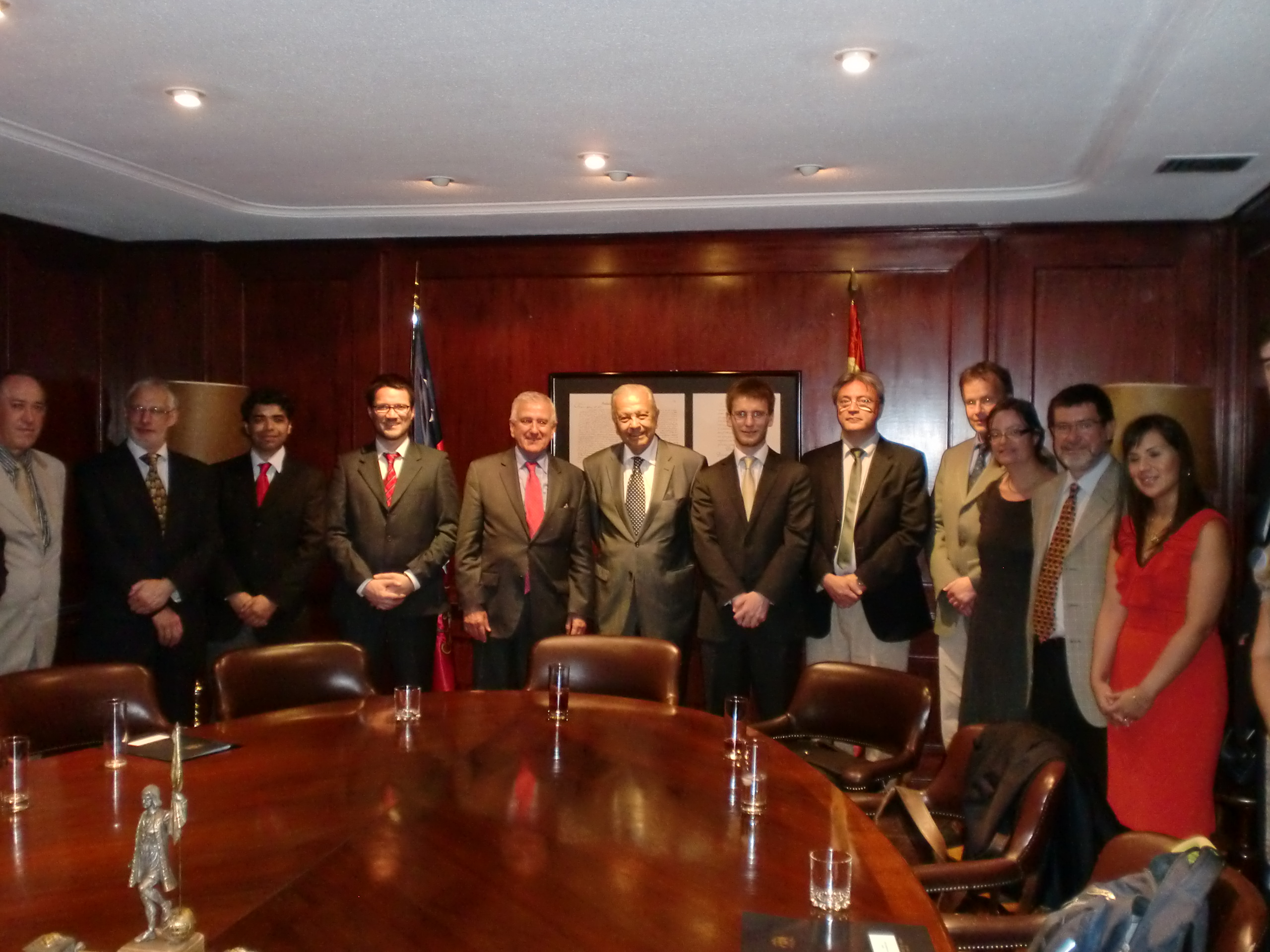 El Embajador de Chile en España, Sergio Romero Pizarro, recibió a una Misión de Astro- Ingeniería, encabezada por Gabriel Rodríguez García-Huidobro, Embajador, Director Energía, Ciencia y Tecnología, e Innovación del Ministerio de Relaciones Exteriores y Juan Manuel Santa Cruz, Jefe de la División de Innovación del Ministerio de Economía e integrada por el Presidente de las Empresas de la Industria Eléctrica y Electrónica, Álvaro Urzúa, la empresa AXYS, SA, Sergio Muñoz; ADDERE Consultores, Gerardo Rivas y las Universidades, Católica de Chile, Leopoldo Infante; Católica del Norte, Roland Lemke y Katrien Steenbrugge; Universidad de Chile, Ricardo Finger; Universidad Federico Santa María, Mauricio Solar; Universidad de Concepción, Neil Nagar; Proyecto ALMA, Rodrigo Olguín; Ministerio de Relaciones Exteriores, Karen Molina; Embajada de Chile, Ximena Alcayaga y Tomás Pablo, Comité de Inversiones Extranjera, CIE.
