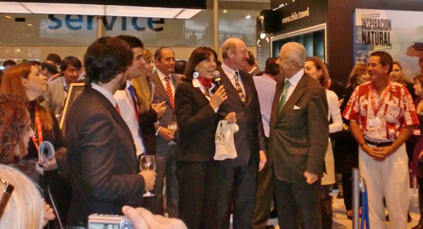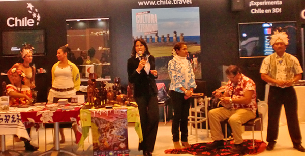 Integran la delegación dos bailarines pascuenses que concitan la atención de los visitantes que llegan hasta el stand de Chile, que ofrece distintas alternativas de lugares de nuestro país, de sus 15 regiones que, según expresa la Subsecretaria de Turismo,Jacqueline Plass, constituyen los atractivos que han permitido el incremento del flujo turístico hacia Chile sobrepasando los tres millones de visitantes.