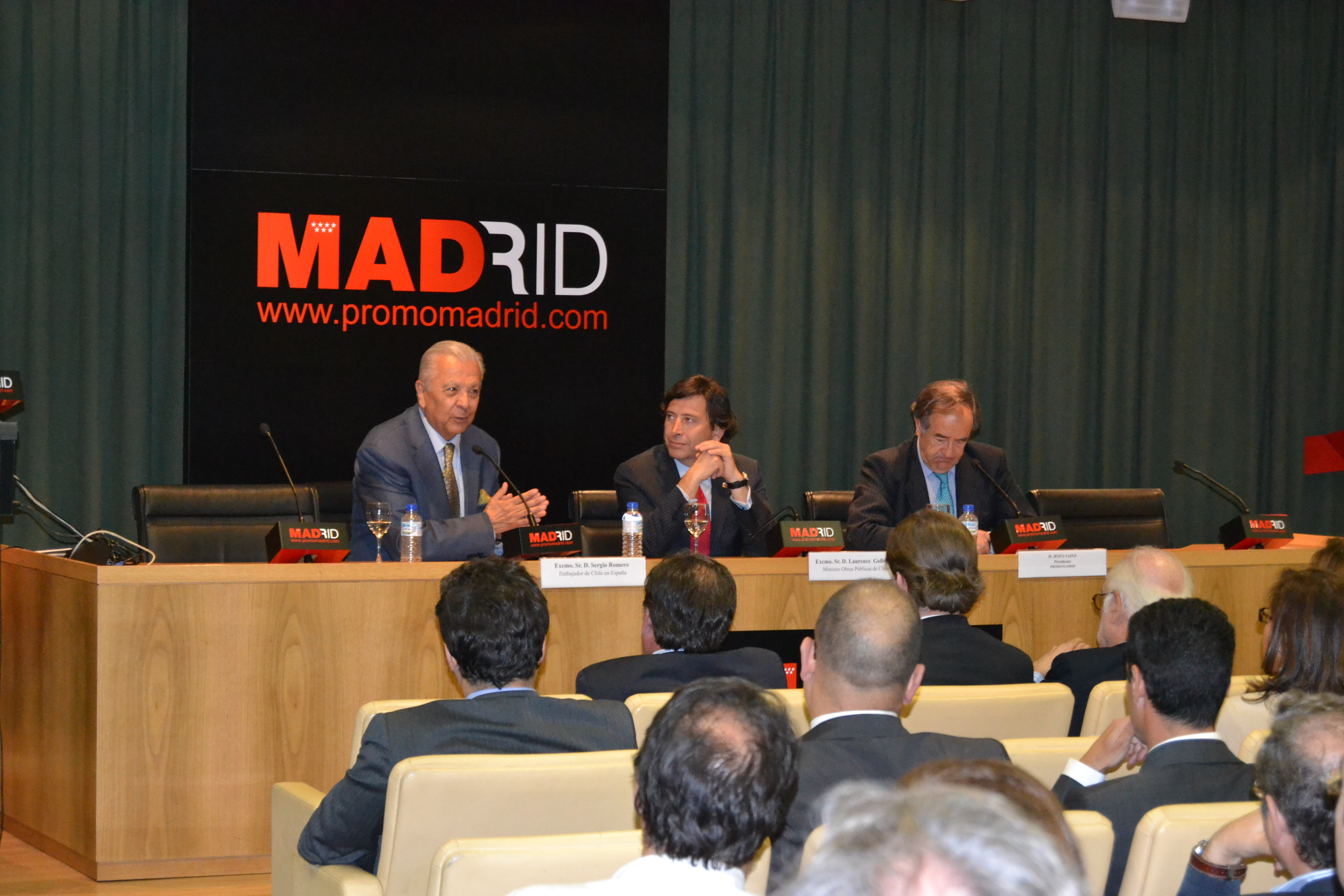 Nota: la fotografía corresponde a la participación del Ministro Golborne en Madrid acompañado del Embajador Romero y del Presidente de PromoMadrid Jesús Sanz en un Seminario sobre Infraestructuras.