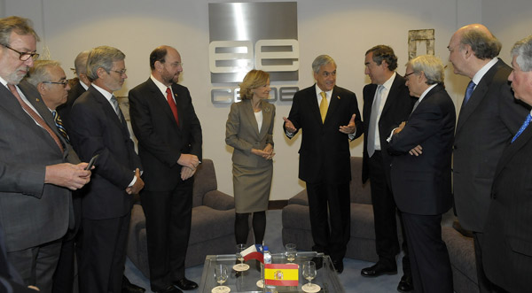 Después de la simbólica ceremonia, ambas autoridades y el resto de la comitiva oficial se trasladaron a la Sede de la Confederación Española de Organizaciones Empresariales (CEOE). En ese lugar el gobernante chileno inauguró el Seminario Empresarial que la Confederación está organizando para los empresarios ibéricos.