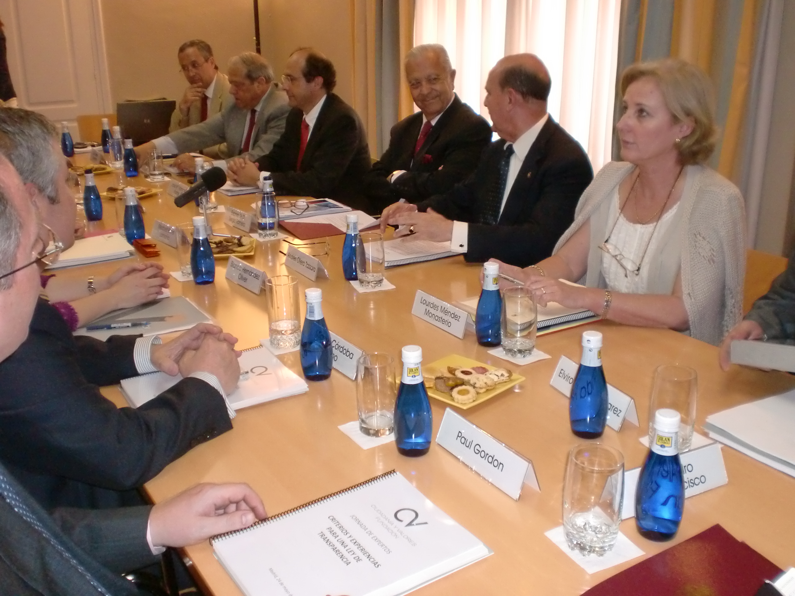 Foto: integrantes del panel de expertos españoles sobre transparencia y el Embajador de Chile Sergio Romero
