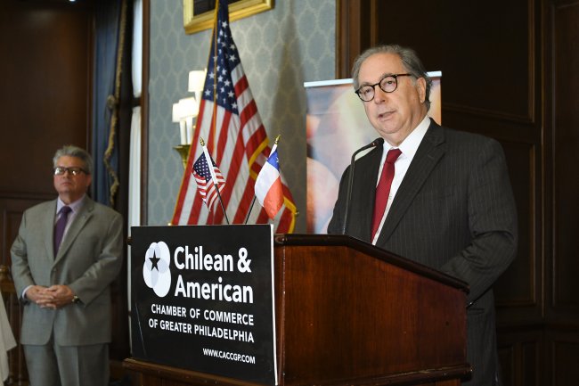 Embajador Valdés defiende libre comercio y la integración regional en almuerzo de la Cámara de Comercio Chileno-Americana de Filadelfia