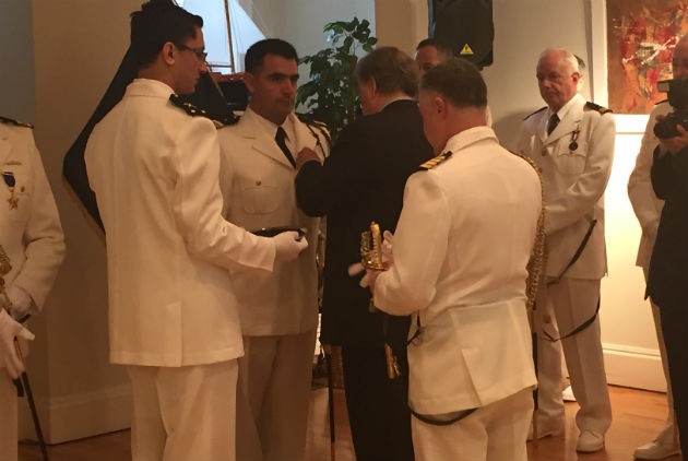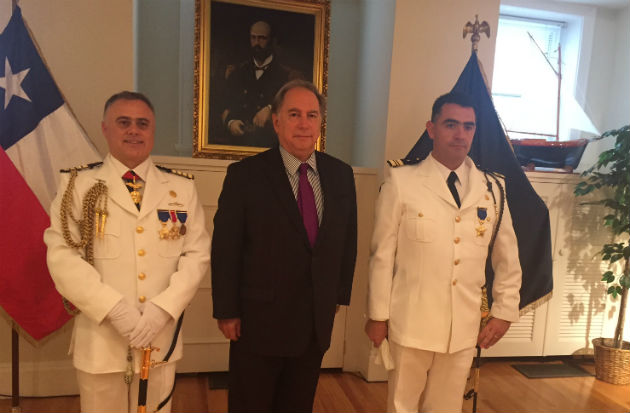 En la ocasión tres oficiales fueron condecorados por cumplir 20 años de servicio, el sargento segundo Claudio Aguayo Araya; y los capitanes de corbeta César Negrete Crispi y Patricio Coyol Parra. El embajador de Chile, Juan Gabriel Valdés y el jefe de la Misión Naval fueron los encargados de condecorar a los oficiales.