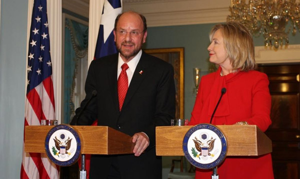 A pocos días de concretarse la visita del Presidente de Estados Unidos, Barack Obama, a Chile, dentro del marco de su gira por América Latina, el Canciller Alfredo Moreno sostuvo una reunión a puertas cerradas con la Secretaria de Estado, Hillary Clinton. La reunión se llevó a cabo en las propias oficinas de la Secretaria Clinton, en el Departamento de Estado en Washington D.C., y se extendió por más de 40 minutos.