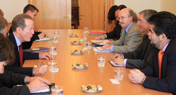 El Ministro de Relaciones Exteriores (S) Fernando Schmidt se reunió con el ex Embajador de EE.UU. en Chile y actual Secretario Adjunto de la Dirección Internacional de Antinarcóticos y Cumplimiento de la ley de EE.UU., señor William R. Brownfield, encuentro en el que participaron también los Subsecretarios de Interior y Seguridad Pública, señores Rodrigo Ubilla y Cristóbal Lira, respectivamente.