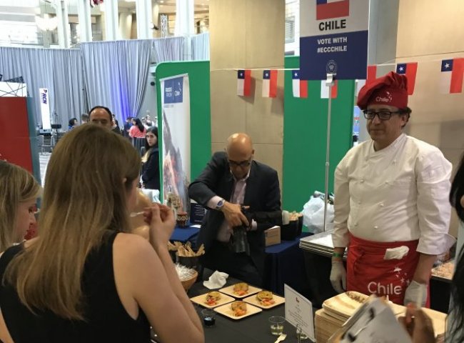 Chile compitió con platos como locos en salsa verde, ceviche de salmón, pastel de choclo, preparados por el Chef chileno Guillermo Muñoz, además probar renombrados vinos chilenos. Todos los productos fueron donados por Salmón Chile, Patagonia Mussels, Cambiasso Hermanos, Vilkun, Nestlé Chile y la Asociación de Exportadores de Chile.