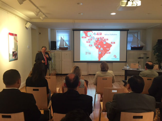 El doctor Jorge Rojas dictó una charla en la Embajada de Chile en EE.UU a la que asistieron representantes de los distintos gobiernos de la región. Con cifras y estadísticas en mano, el facultativo los invitó a capacitar a sus profesionales en los programas que brinda la institución con 35 años de existencia.