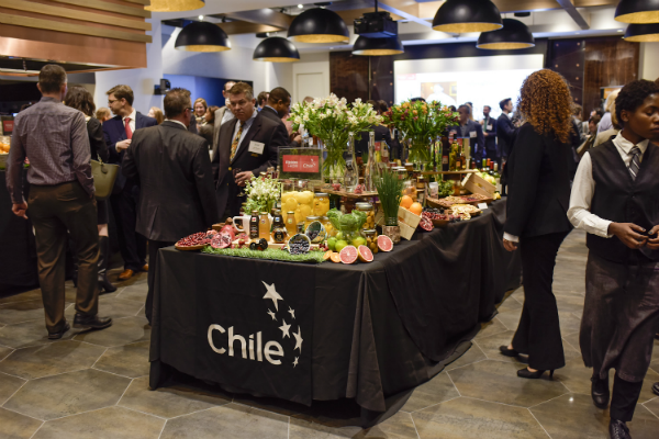 Estamos entre los mayores exportadores de, al menos, 60 productos, entre ellos uvas, salmón, vinos, manzanas, cerezas y berries. Todos productos que estamos degustando esta noche, dijo.