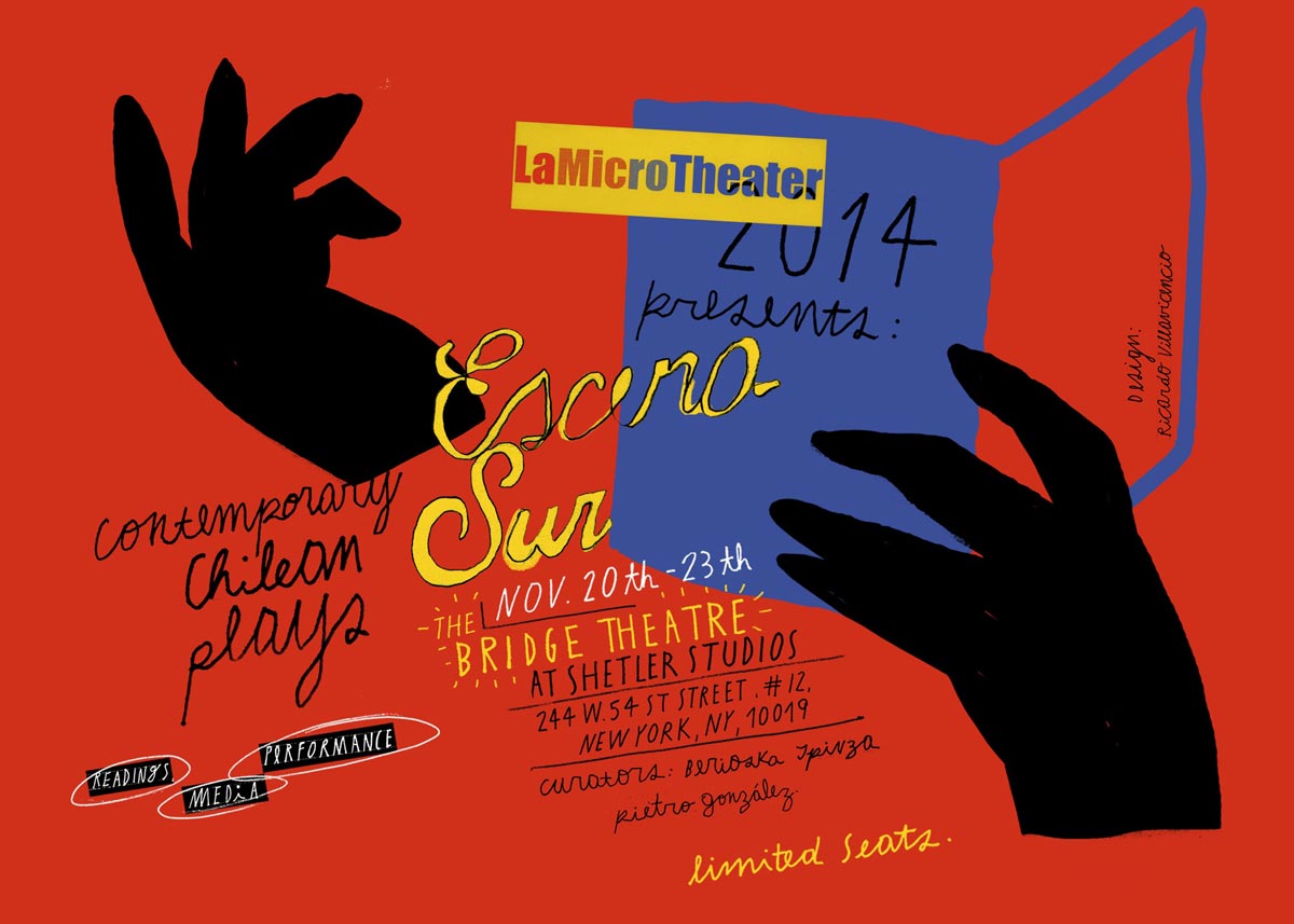 Nueva York, 10 de noviembre, 2014.- LaMicro Theater se complace en anunciar su programa Escena Sur: Dramaturgia Chilena Contemporánea en Nueva York, a realizarse los días 20, 21, 22 y 23 de noviembre en la sala The Bridge-Shetler Studios en Manhattan.