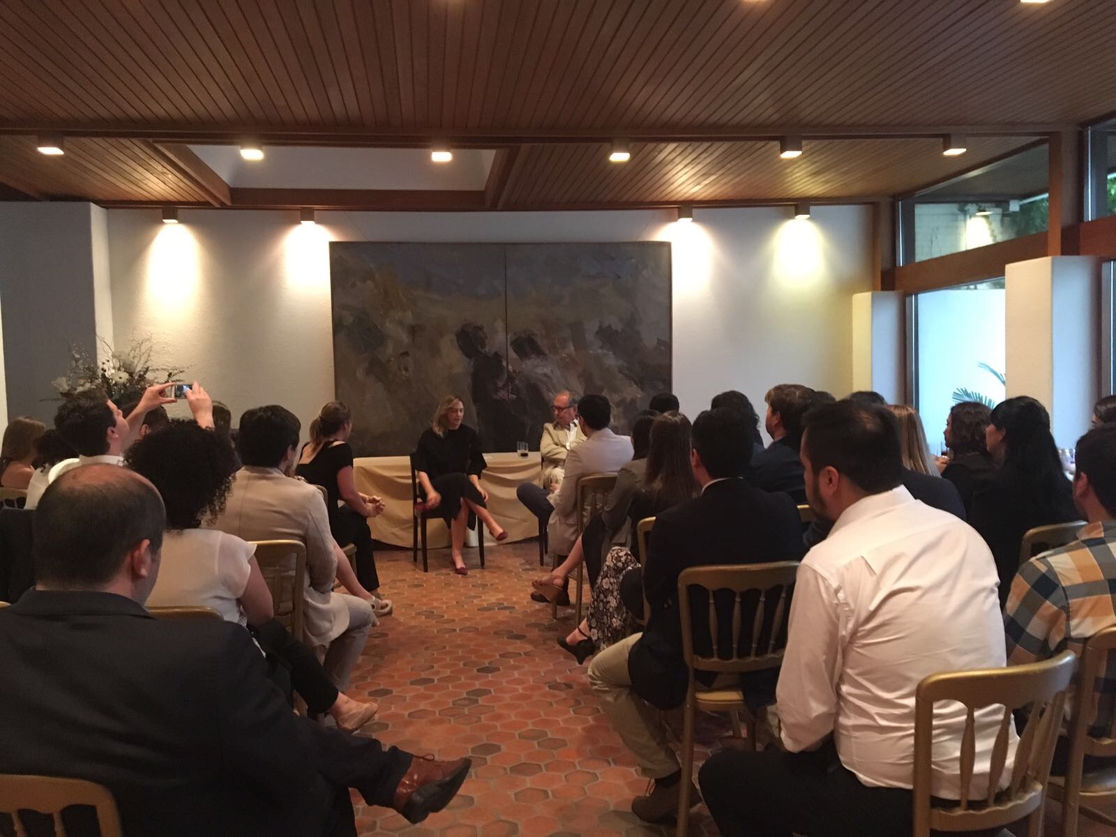 En el marco de esta visita, los estudiantes se reunieron con el embajador Juan Gabriel Valdés en la Residencia Oficial de Chile, ocasión en la que el diplomático se refirió a las relaciones entre Chile y Estados Unidos y a los temas e intereses que ambos países comparten.