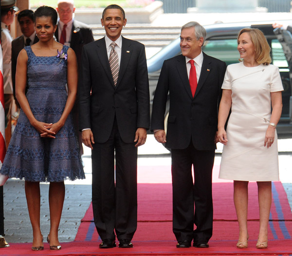 El Presidente de Estados Unidos, Barack Obama, arribó al Grupo Diez de la Fuerza Aérea de Chile pasadas las 13 hrs. de hoy. Tras ser recibido por una comitiva de autoridades nacionales lideradas por el Canciller Alfredo Moreno, el Mandatario norteamericano se dirigió al Palacio de la Moneda para reunirse con el Presidente de la República, Sebastián Piñera.