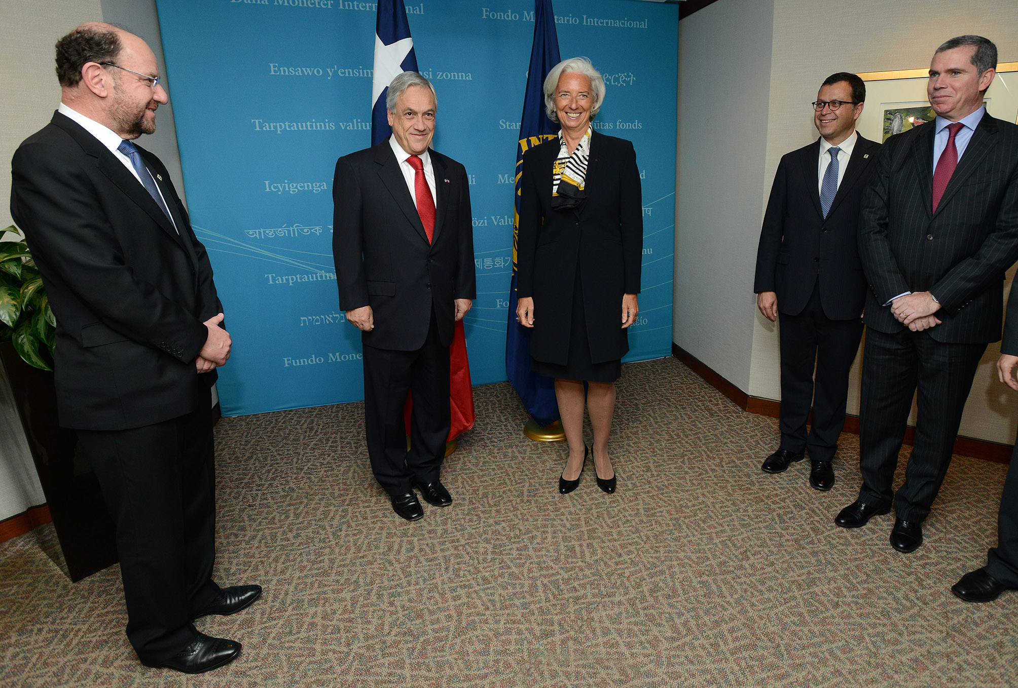 Posteriormente, el Presidente Piñera fue recibido por la Directora Gerente del Fondo Monetario Internacional (FMI), Christine Lagard, en la sede de dicho organismo, junto al Canciller Moreno y el Ministro Hinzpeter.
