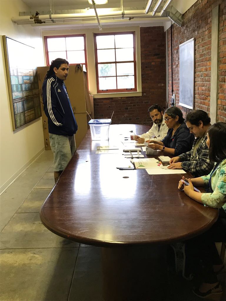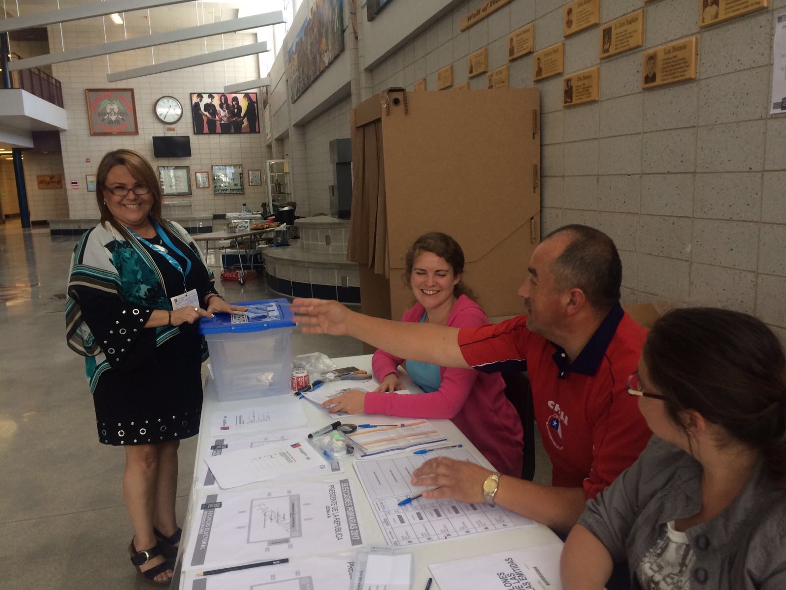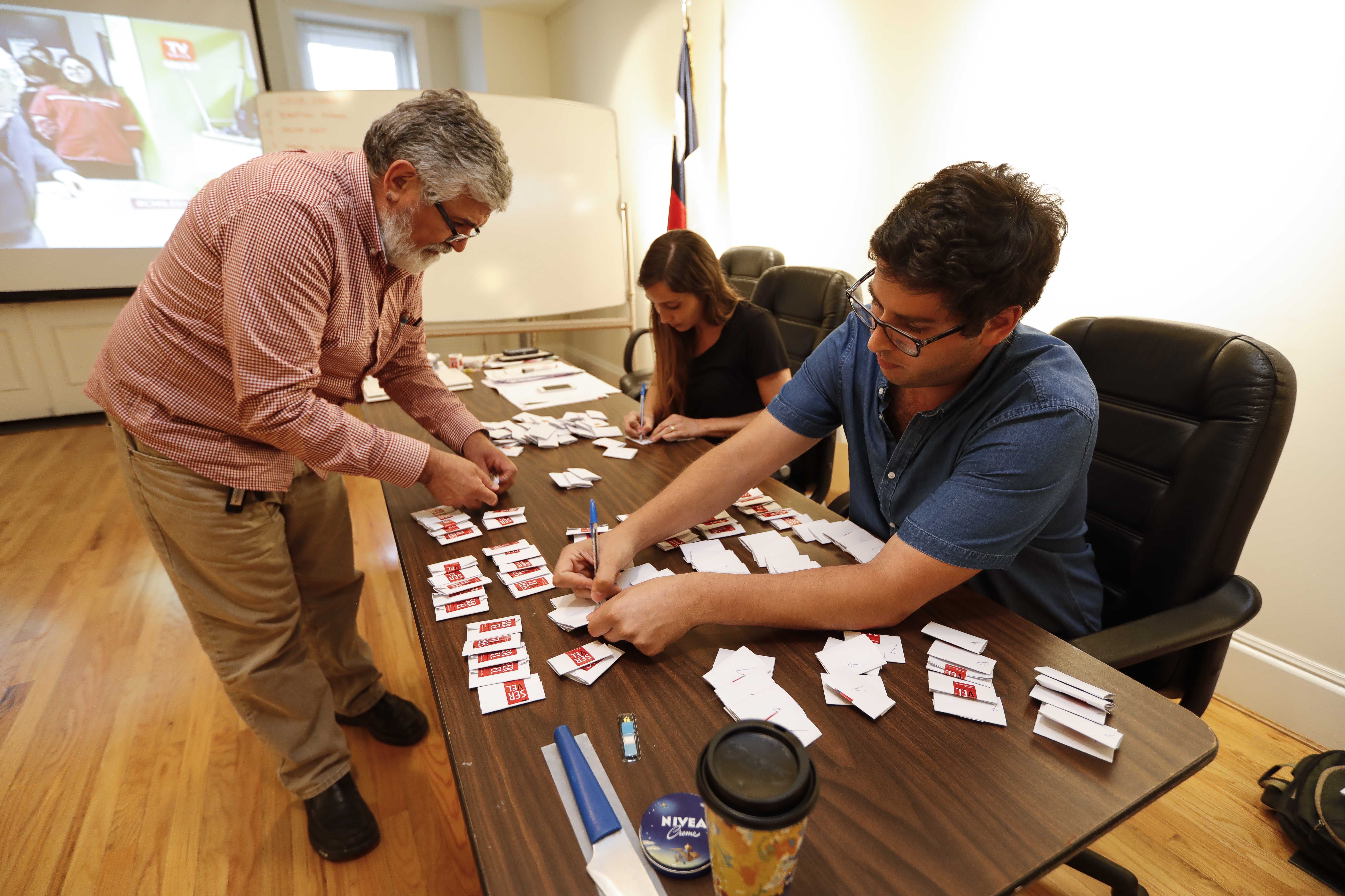 Integrantes de la mesa de votación de Washington DC durante el resultado final de los escrutinios de la elección primaria en la Embajada de Chile en Estados Unidos. Por primera vez en la historia los connacionales residentes en el extranjero pueden participar de los procesos eleccionarios.