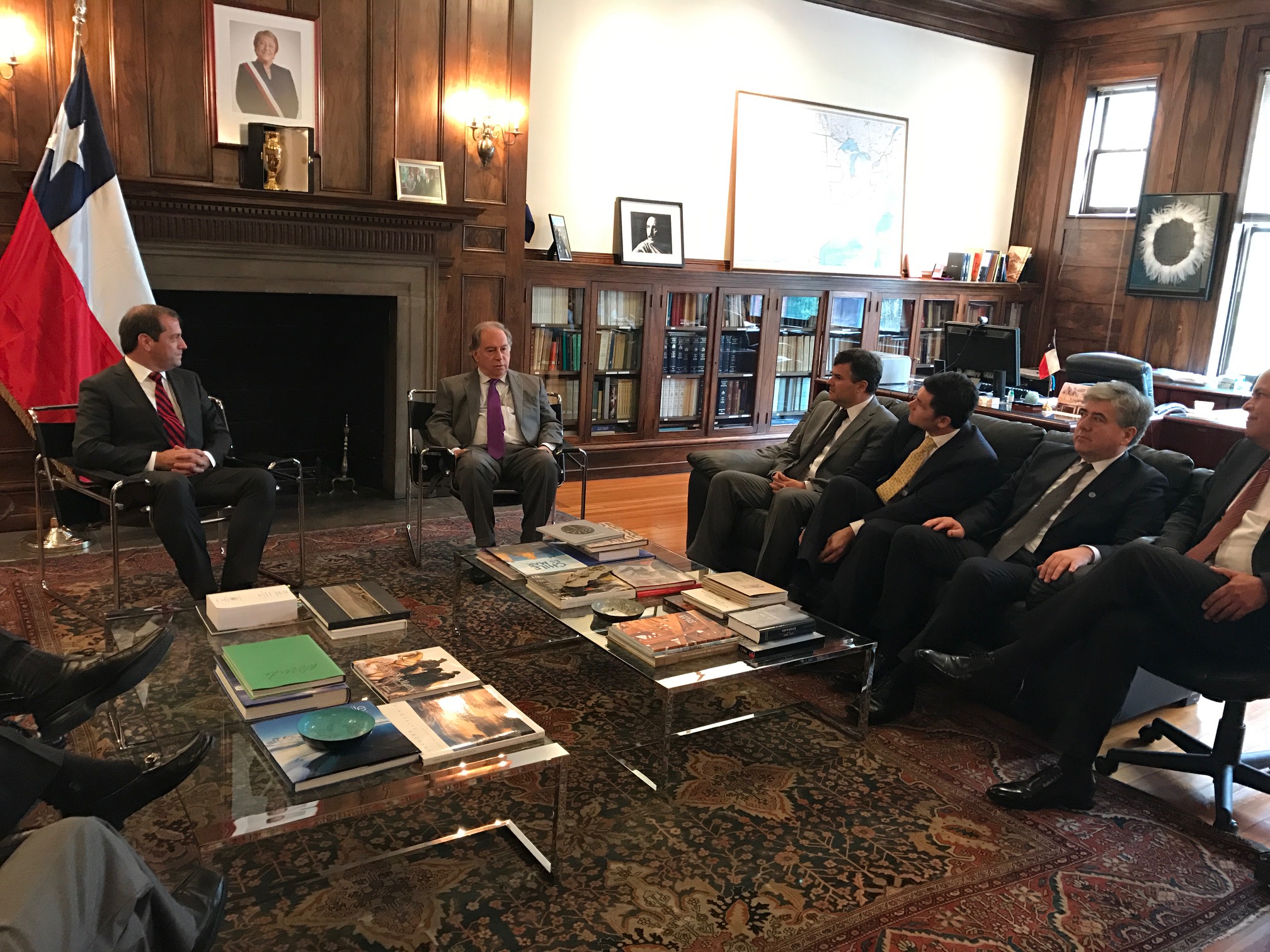 Antes de abandonar Washington DC, fueron recibidos por el embajador de Chile, Juan Gabriel Valdés quien aplaudió la decisión del gremio de venir a EE.UU y conocer la experiencia que estos institutos y centros de formación técnica tienen en el país del norte.