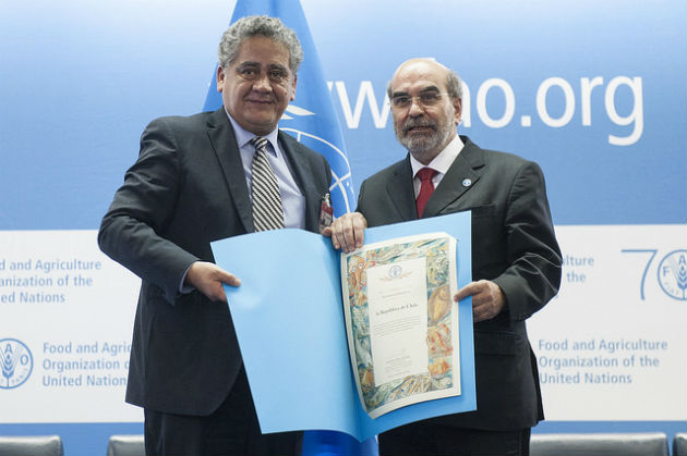Director General de la FAO, José Graziano, entrega reconocimiento al Subsecretario de Pesca y Acuicultura, Raúl Súnico.