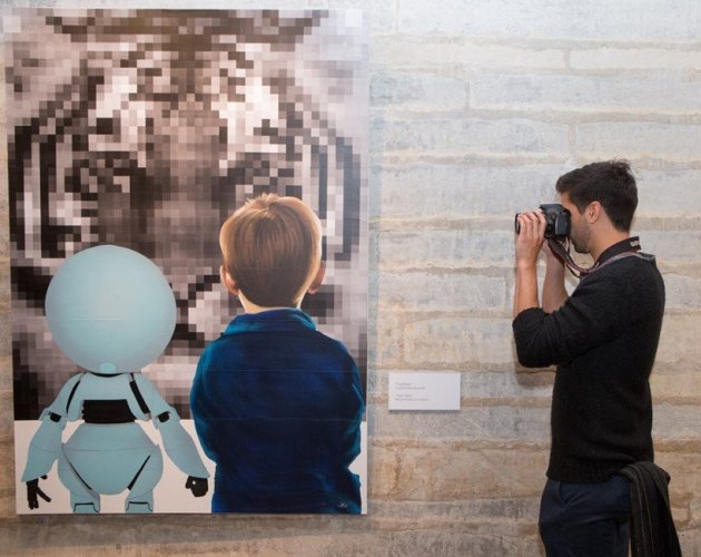 "El éxito del tigre" en alusión a la reputación de Estonia como precursor del gobierno digital y ciberseguridad. Muchos de los asistentes tomaron fotos de los cuadros expuestos