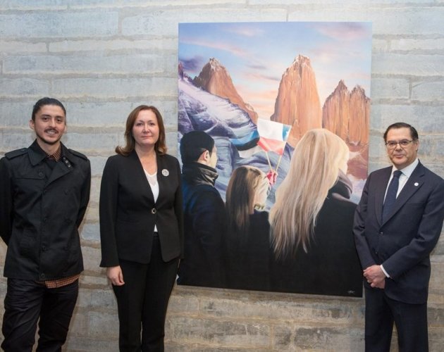 En esta oportunidad, el Embajador de Chile en Finlandia y Estonia, Sr. Eduardo Gálvez, hizo entrega del último cuadro de dicha serie "El abrazo" a la Sra. Janne Andresoo, Directora de la Biblioteca nacional de Estonia será para su exposición permanente y como regalo conmemorativo de Chile a Estonia por su jubileo. Dicho lienzo retrata a una pareja mixta conformada por un chileno y una estonia que sostienen las banderas de ambos países con uno de los paisajes más emblemáticos del parque Nacional de Torres del Paine de fondo y que simbolizaría las excelentes relaciones existentes entre la República de Chile y la República de Estonia. Asimismo, el cuadro pretende ser un guiño al bicentenario de Chile (1818) y al centenario de Estonia (1918).
