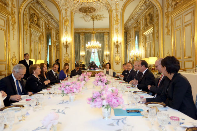 Almuerzo ofrecido por el Presidente François Hollande a la Presidenta Michelle Bachelet en el Palacio del Eliseo.