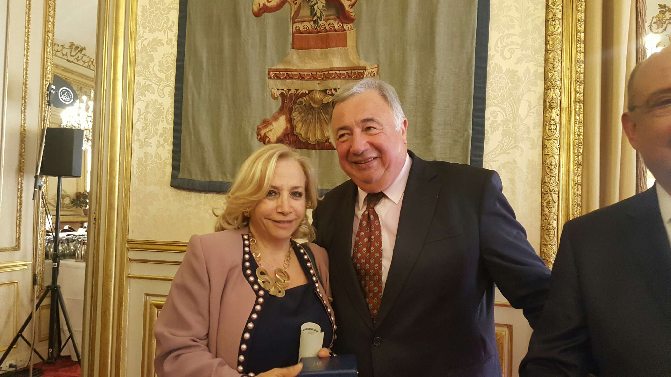 Embajadora de Chile S.E. Marcia Covarrubias recibe la distinción póstuma otorgada a Ángel Parra, por parte del Presidente del Senado francés, senador Gérard Larcher