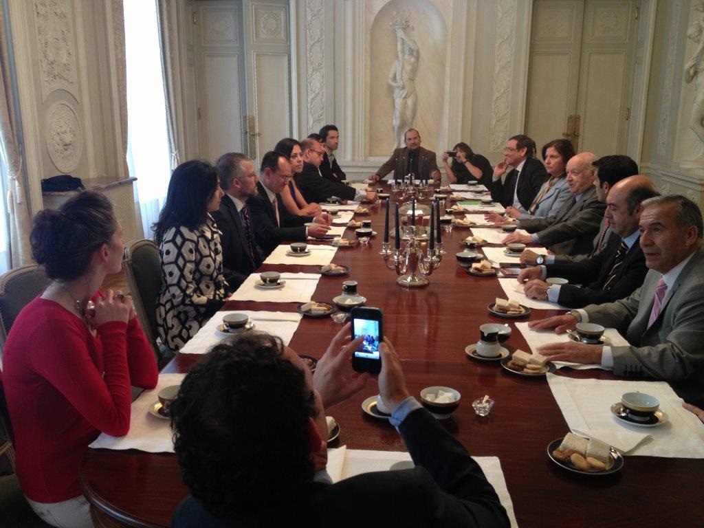 En el marco de su visita a Francia, el lunes 22 de abril concurrió a la Embajada una delegación integrada por consejeros y funcionarios del gobierno regional metropolitano de Santiago y funcionarios del Ministerio de Transportes chileno con el objeto de sostener un encuentro con altos representantes del Consejo Regional de Île de France. La reunión fue presidida por el Embajador en París, señor Jorge Edwards.