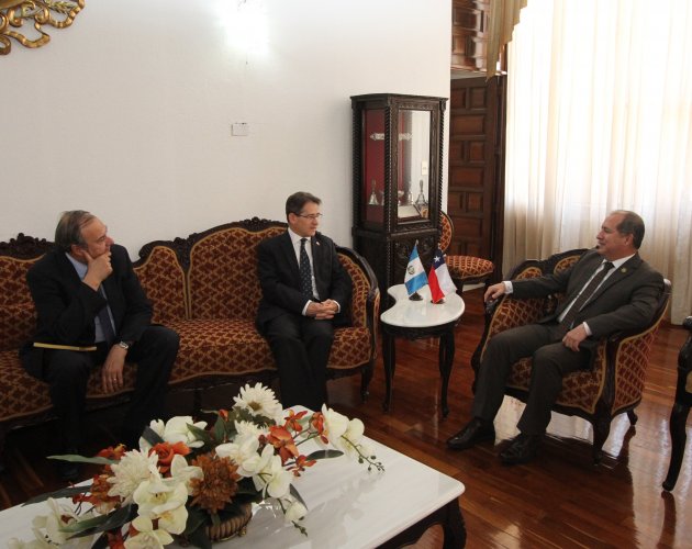 En un ambiente distendido y de gran cordialidad, el Presidente de la CSJ, Magistrado Néster Mauricio Vásquez Pimentel, recibió al Embajador de Chile en Guatemala, Javier Becker, el martes 26 de febrero.