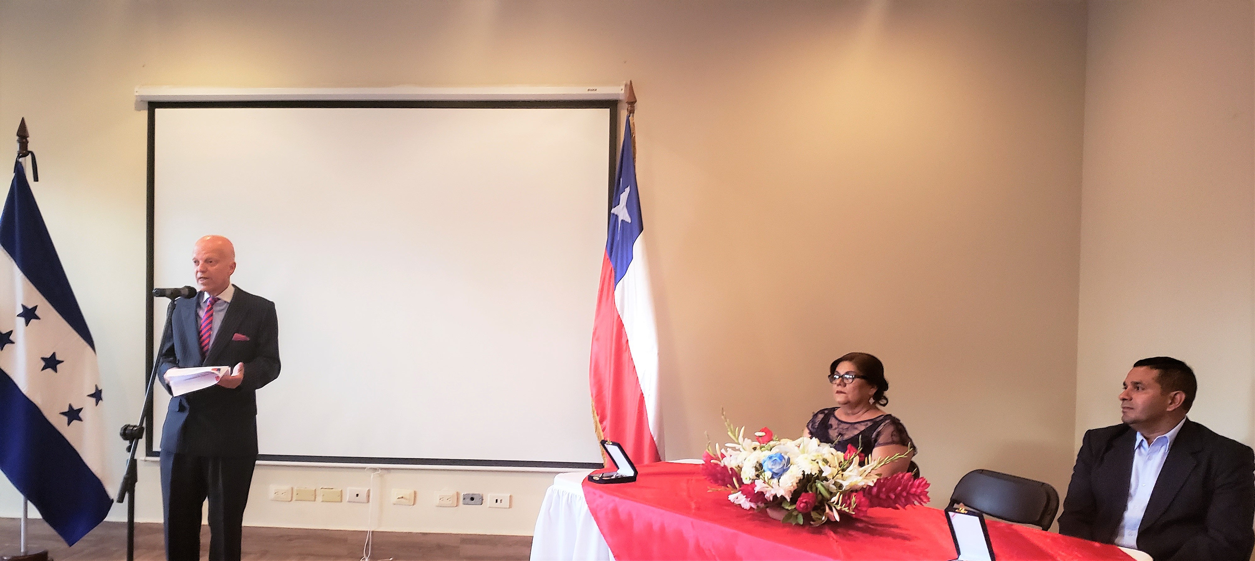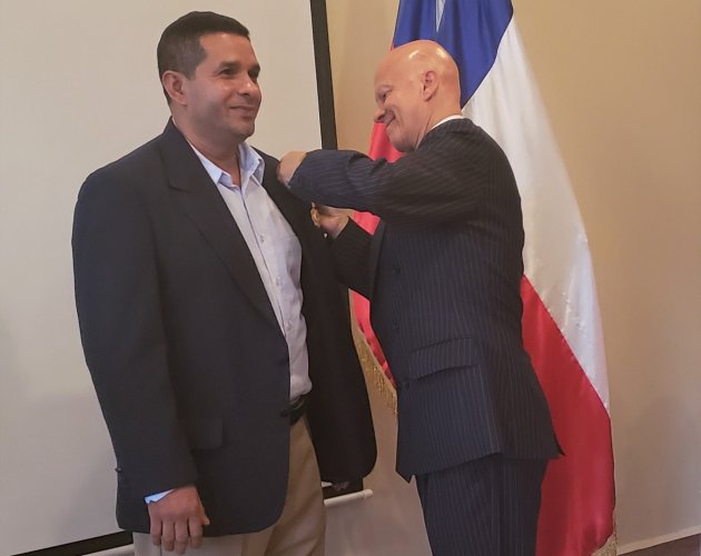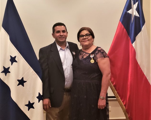 El Embajador Enrique Barriga, en nombre del Gobierno de Chile, otorgó la condecoración, en el grado Orden al Mérito Docente y Cultural "Gabriela Mistral" a los docentes Abner Castillo y Sagrario Portillo, en reconocimiento a su larga y brillante carrera profesional, así como su trayectoria y compromiso. Estos profesores se han desempeñado como educadores y directores de las Escuelas Repúblicas de Chile 1 y 2, ubicadas en Tegucigalpa, Honduras.