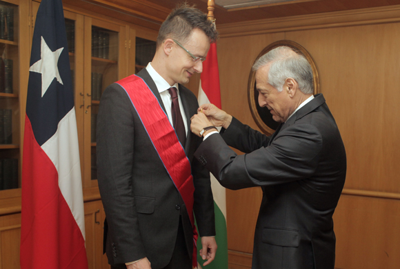 Ministro Muñoz se reunió con Canciller de Hungría y lo condecoró con la orden Bernardo O'Higgins en el Grado de Gran Cruz
