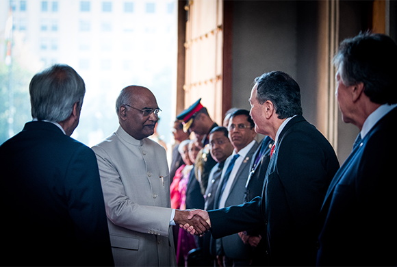 El Ministro de Relaciones Exteriores, Roberto Ampuero, participó esta mañana en el encuentro que sostuvieron el Presidente de la República, Sebastián Piñera, y el mandatario de la India, Ram Nath Kovind, en el marco de la visita oficial de este último a Chile.