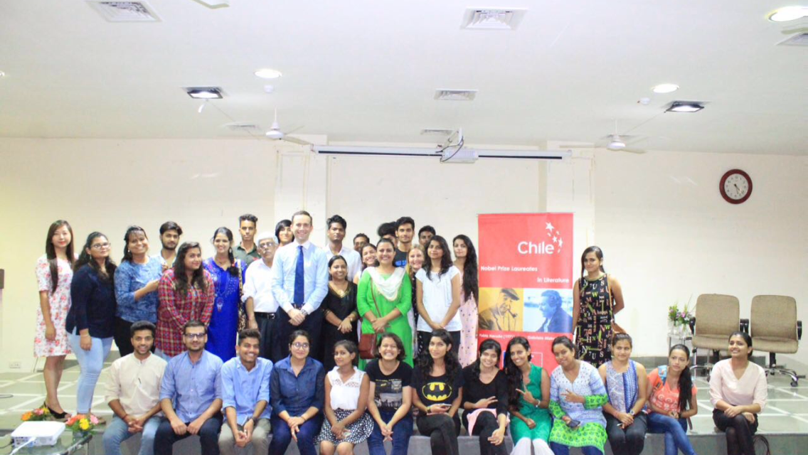 Luego realizó una presentación sobre la obra del poeta, sus residencias en Chile mediante fotografías facilitadas por la Fundación Neruda y sobre la relación del vate con India. Los alumnos de la Universidad recitaron algunos de sus versos en español, hindi y francés e interpretaron teatralmente escritos del Premio Nobel de Literatura.
