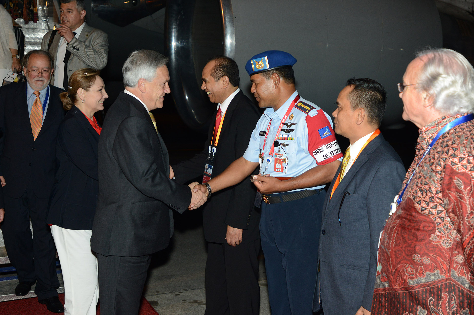 El Presidente de la República, Sebastián Piñera, junto a su señora, Cecilia Morel, el Ministro de Relaciones Exteriores, Alfredo Moreno, y la delegación chilena, llegó a Bali, Indonesia, para participar en la XXI Cumbre de Líderes APEC 2013.