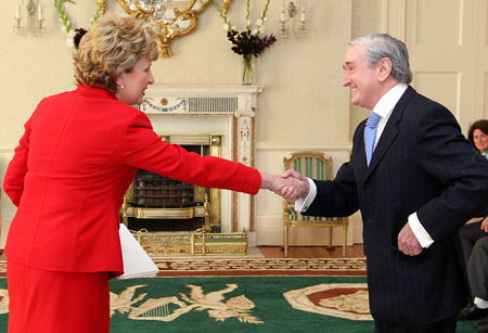 En dicho acto la Presidenta de Irlanda expresó a nombre de su país los mejores deseos a todos los chilenos y chilenas con motivo de la celebración del Bicentenario y afirmó que la llegada del representante de Chile a su país ocurre en un momento tan especial y significativo como lo es la celebración de los 200 años de la Independencia de Chile. Expresó su especial afecto por Chile, donde estuvo en visita oficial el 2004, e hizo los mejores deseos para el bienestar de la sociedad chilena y la solidariedad del pueblo irlandés con el pueblo de Chile luego del pasado terremoto del 27 de febrero, y en especial su preocupación y apoyo al rescate de los 33 mineros atrapados en el norte del país."