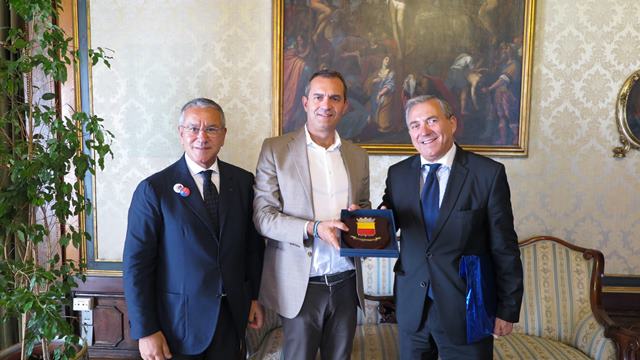 El alcalde de Nápoles, Luigi de Magistris, recibió en el Palacio San Giácomo al embajador de Chile, Fernando Ayala, y al nuevo cónsul honorario, Maurizio Di Stefano.