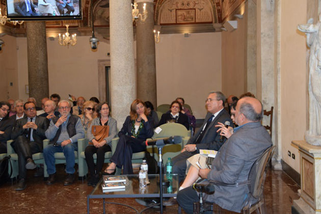 Asistentes al lanzamiento del libro de Inti Illimani, editado por Logos, en el Instituto de la Enciclopedia Italiana, Treccani, en el centro histórico de Roma.