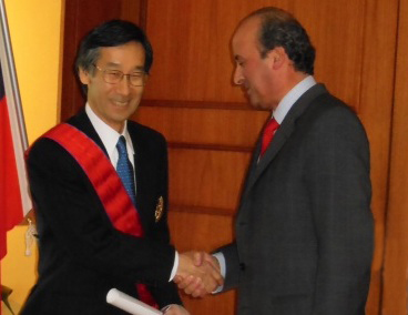 Embajador Satoru Satoh recibe las insignias de la Orden de Bernardo O´Higgins en el grado de Gran Cruz y el diploma correspondiente.