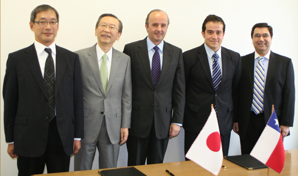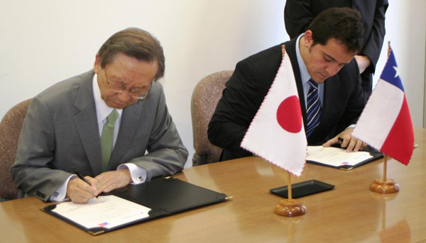 Firma del MOU de cooperación entre ambos países para aumentar y diversificar la inversión japonesa en Chile.