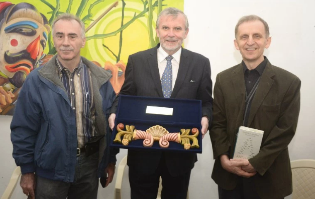Bolívar Carvalho, vicepresidente de APAC, embajador Rodrigo Espinosa y el sacerdote Piotr Nawrot.
