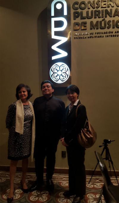 Odette Magnet, agregada de prensa y cultura del Consulado General de Chile en La Paz; Michio Nishihara y la embajadora del Japón en Bolivia, Kyoko Koga.