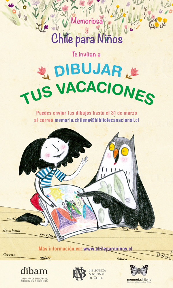 La Dirección de Bibliotecas, Archivos y Museos de Chile, a través de Memoria Chilena, centro de recursos que ofrece documentos y contenidos en formato digital, se encuentra organizando el Concurso Dibujando las vacaciones, orientado a todos los niños y niñas entre 4 y 11 años.