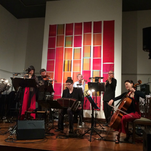 Valentina Montoya canta profesionalmente en Escocia con diferentes bandas. Mr McFalls Chamber es un reconocido grupo de cámara escocés que también ha incursionado en música latinoamericana. Se puede decir que la actuación fue una interesante combinación de talentos británico-chilenos.