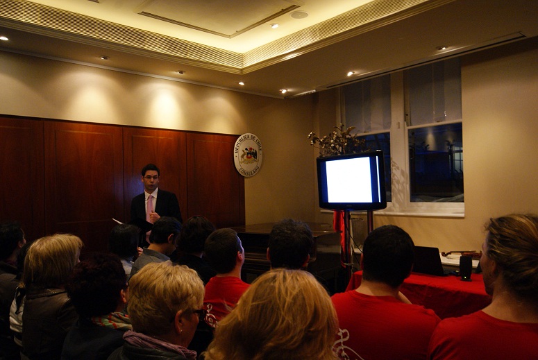 El evento, al cual concurrieron alrededor de 40 personas, comenzó con palabras de bienvenida por parte del Cónsul en Londres, Sebastián Lorenzini. Donde se enfatizó el importante aporte que representa para nuestro país poseer instancias para transmitir su riqueza cultural en el extranjero, más aun siendo estas organizadas por jóvenes estudiantes de distintas ciudades y universidades.