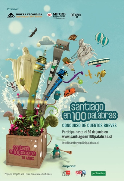 Ya se abrió la convocatoria a participar de la décima versión del concurso de cuentos breves "Santiago en 100 Palabras", el que año a año invita a los chilenos, tanto en Chile como en el exterior, a crear microcuentos que sean inéditos y originales. El tema principal de estas obras literarias debe tratar la vida urbana contemporánea, ya sea a través del ejercicio de la observación de hechos reales o particulares, jugar con elementos de la ficción o simplemente desarrollar una propuesta creativa que recoja la esencia de la metrópolis.