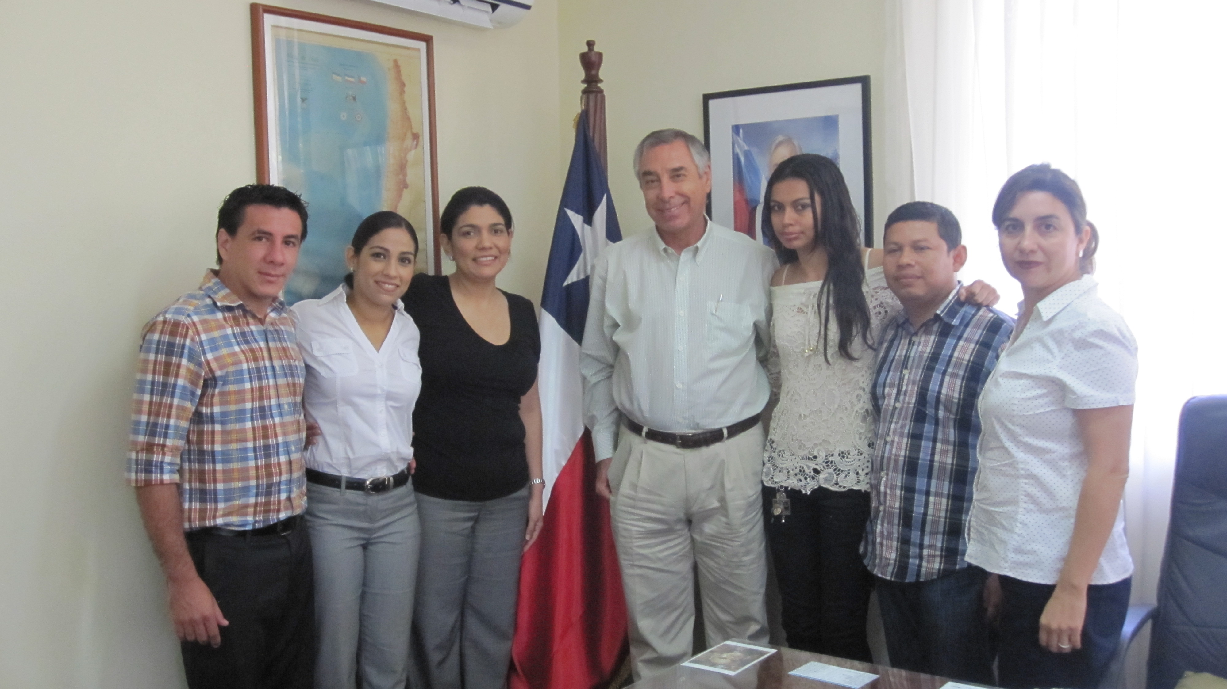 El Embajador de Chile en Nicaragua, Hernán Mena Taboada, recibió a los alumnos nicaragüenses que fueron seleccionados en el Programa de Becas de Magister para el año académico 2014, ofrecido por el Gobierno de Chile a través de la Agencia de Cooperación Internacional de Chile (AGCI). El Embajador estuvo acompañada por la Cónsul en Managua, S.S. Marta Vargas Díaz.