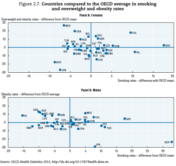 Las ECV no afectan a todos los países de la OCDE por igual. Mientras que los países de Europa Central y del Este presentan una tasa mayor a 400 muertos debido a ECV por cada 100.000 habitantes, otros como Francia y Japón no alcanzan los 150. Si bien el riesgo de diabetes y ECV aumenta con la edad, en países como Chile, Estados Unidos y México, la presencia de diabetes en la población de entre 40 y 59 años alcanza un 12%, frente a un promedio OCDE de 8.9%.