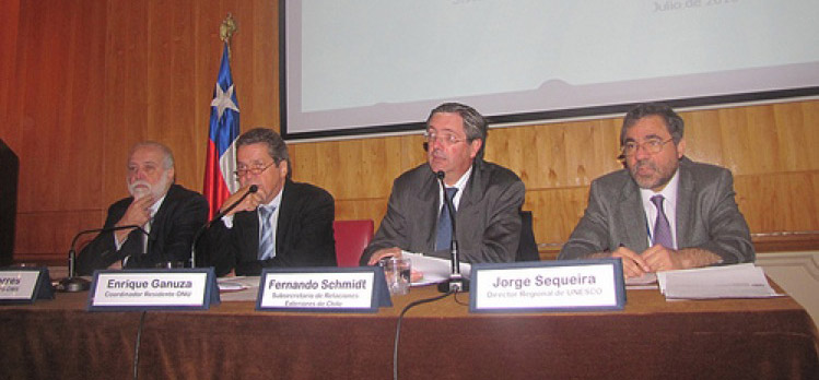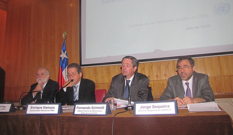 La actividad también contó con la presencia de Enrique Ganuza, Coordinador Residente del Sistema de Naciones Unidas en Chile, que está integrado por 15 agencias participantes, entre las que figuran el ACNUR (Alto Comisionado de las Naciones Unidas para los Refugiados), CEPAL (Comisión Económica para América Latina y el Caribe), FAO (Organización de las Naciones Unidas para la Agricultura y la Alimentación), OACNUDH (Oficina del Alto Comisionado de los Derechos Humanos), OIM (Organización Internacional para las Migraciones), OIT (Organización Internacional del Trabajo), UNUDI (Organización de las Naciones Unidas para el Desarrollo Industrial), ONUSIDA (Programa Conjunto de las Naciones Unidas sobre el VIH/SIDA), OPS/OMS (Organización Panamericana de la Salud/ Organización Mundial de la Salud). PNUD (Programa de las Naciones Unidas para el Desarrollo), UIT (Unión Internacional de Telecomunicaciones), UNESCO (Organización de las Naciones Unidas para la Educación, la Ciencia y la Cultura), UNFPA (Fondo de Población de las Naciones Unidas), UNICEF (Fondo de las Naciones Unidas para la Infancia) y el UNIFEM (Fondo de Desarrollo de las Naciones Unidas para la Mujer).
