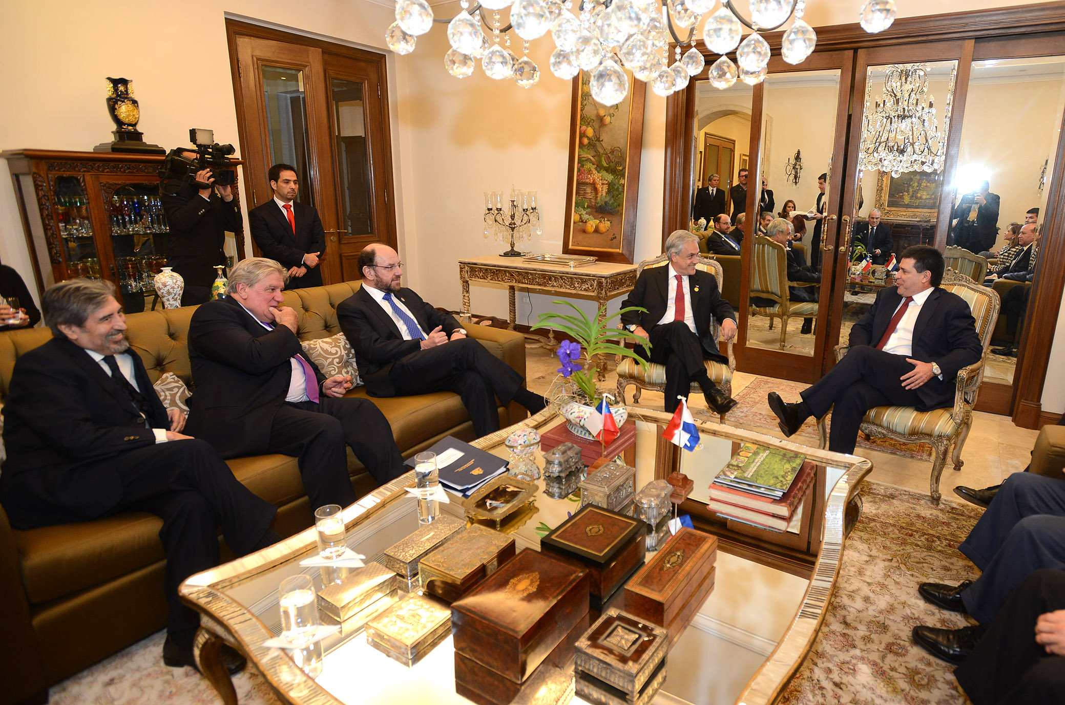 Posteriormente el Presidente Piñera junto al Canciller Moreno, sostuvo una reunión bilateral con el Presidente electo de Paraguay, Horacio Cartes en su residencia privada, en el marco de su participación en la ceremonia de transmisión del Mando de dicho país.