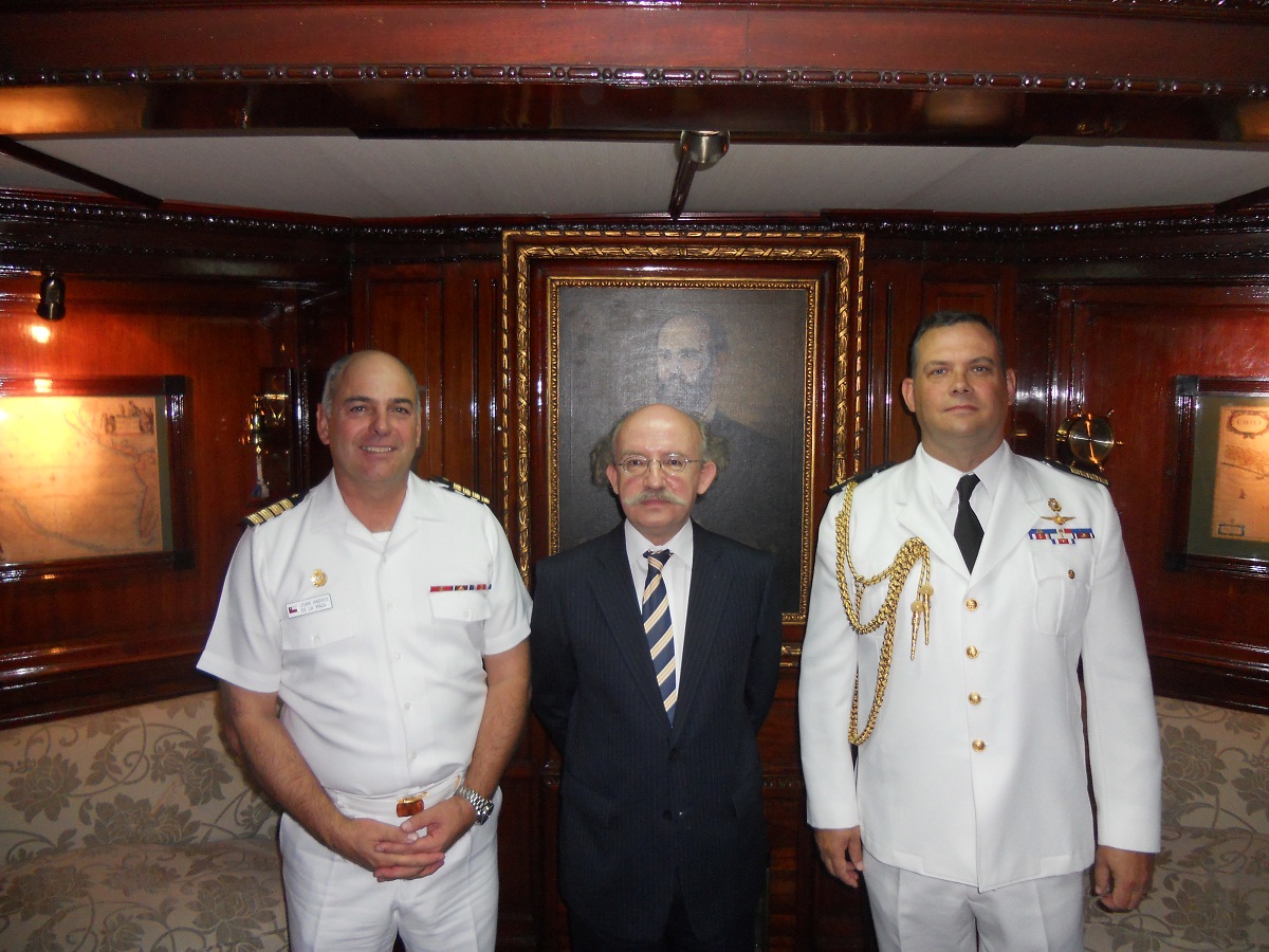 En el Puerto del Callao la Esmeralda fue recibida por el Encargado de Negocios a.i. de la Embajada de Chile en Perú, Ministro Consejero Armin Andereya, acompañado del Agregado de Defensa y Naval de la Embajada, Capitán de Navío Alberto Ahrens, así como diplomáticos y agregados de la Embajada.