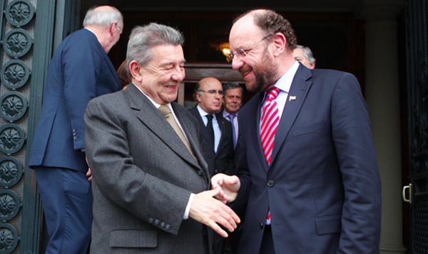 El encuentro tuvo lugar en el Club Nacional de Lima, lugar al que acudieron ambos personeros invitados por el actual Canciller peruano, Jose Antonio García Belaunde a un almuerzo en el que participo además la Ministra de RR.EE. de Colombia, Maria Ángela Holguín.